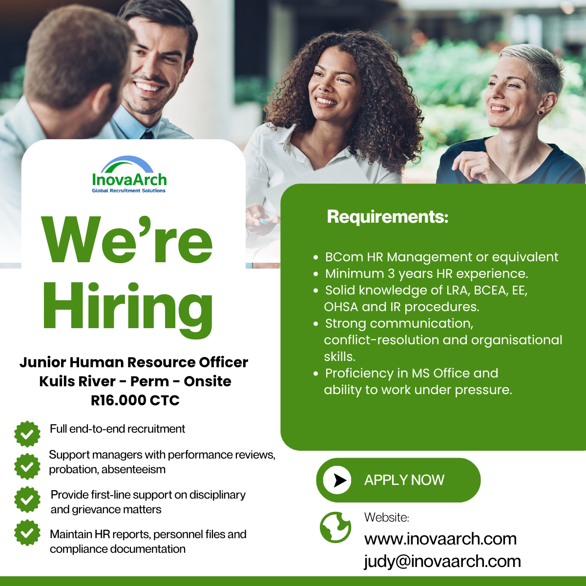 Our client is looking for a HR Officer to manage recruitment, HR advisory services and industrial relations while ensuring compliance with South African labour legislation. This role suits an organised, detail-oriented HR professional with good IR and reporting capability.